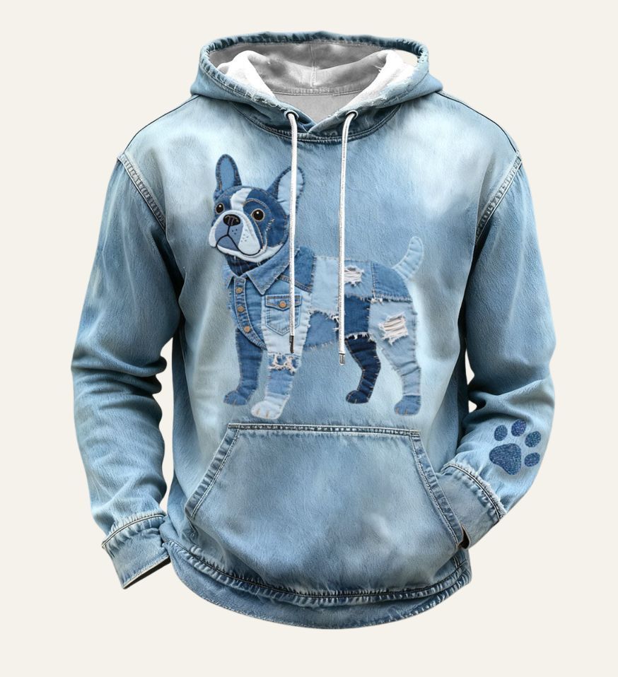 Paco - Sudadera con Capucha de Patchwork Estilo Bulldog Francés para Hombre